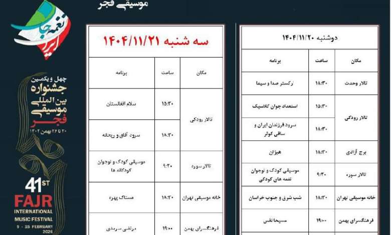 شهر: تهران سالن اجرا: فرهنگسرای نیاوران تاریخ برگزاری: ۲۷ و ۲۸ آذر ساعت: ۱۵:۳۰ خرید بلیت (اتمام بلیت) نمایش کوچ دل سایر کنسرتها: کنسرت نمایش هشتگ عمه پلاس+ سالن جام جم ۲۴ بهمن خرید بلیت در حال فروش کنسرت کودک و خانواده عمو فرهنگ اراک، فرهنگ سرای آیینه پنجشنبه ۱۶ بهمن خرید بلیت اتمام بلیت کنسرت نمایش هشتگ عمه پلاس+ سالن جام جم ۱۰ بهمن خرید بلیت در حال فروش کنسرت پیانو فریدون ناصحی تالار رودکی ۵ اسفند خرید بلیت بهزودی کنسرت نمایش هشتگ عمه پلاس+ سالن جام جم ۲۷ دی خرید بلیت در حال فروش کنسرت نمایش هشتگ عمه پلاس+ سالن جام جم ۲۴ بهمن خرید بلیت در حال فروش کنسرت کودک و خانواده عمو فرهنگ اراک، فرهنگ سرای آیینه پنجشنبه ۱۶ بهمن خرید بلیت اتمام بلیت کنسرت نمایش هشتگ عمه پلاس+ سالن جام جم ۱۰ بهمن خرید بلیت در حال فروش کنسرت پیانو فریدون ناصحی تالار رودکی ۵ اسفند خرید بلیت بهزودی کنسرت نمایش هشتگ عمه پلاس+ سالن جام جم ۲۷ دی خرید بلیت در حال فروش کنسرت مجید خراطها میانه، سالن سینما فرهنگ ۲۳ دی خرید بلیت در حال فروش آخرین اخبار: آریا عظیمینژاد: لطفا به من جایزه ندهید آغاز سوتوکور چهل و یکمین جشنواره موسیقی فجر افتتاح «خانه موسیقی تهران» در قلب عباسآباد، کلید عمارت ۵ طبقه موسیقی به هنرمندان سپرده شد رضا بهرام: موسیقی بدون حال خوب مردم ارزشی ندارد لغو کنسرت روزبه بمانی در دبی، پیوستن آقای عاشقانه به موج سکوت هنرمندان توقف کنسرتهای علیرضا قربانی در همدردی با مردم، سکوت پروژه «ایرانم» به احترام روزهای تلخ دیدگاهتان را بنویسید لغو پاسخنشانی ایمیل شما منتشر نخواهد شد. بخشهای موردنیاز علامتگذاری شدهاند *دیدگاه * نام * ایمیل * وب سایت ذخیره نام، ایمیل و وبسایت من در مرورگر برای زمانی که دوباره دیدگاهی مینویسم. Δ